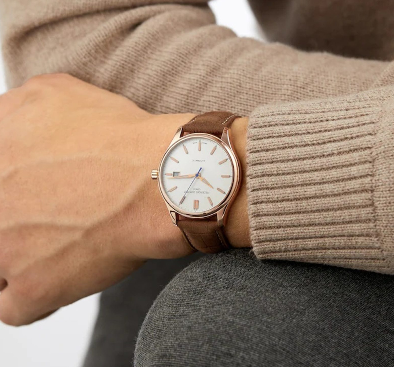 В положении «12 часов» изображено окно на механическом сердце, прославленное Фредериком Константом. Известное как «Биение сердца», оно позволяет вам увидеть бьющееся сердце часов.