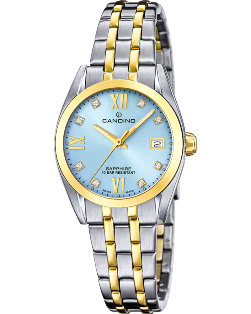 Предлагаем купить наручные часы Candino C4704/G в г. Абакан. Это классические женские часы из коллекции Couple Woman. Водозащита до 100 метров позволит плавать, нырять и заниматься другими водными видами спорта, не беспокоясь о сохранности механизма. Надежное сапфировое стекло противостоит появлению царапин. Сапфировое стекло используется в дорогостоящих изделиях, это лучшее стекло для наручных часов, которое не царапается при механическом воздействии, его можно повредить только алмазом. Корпус часов изготовлен из стали, механизм — кварц. Кварцевые часы всегда точнее механических. В среднем, погрешность хода составляет 20 секунд в месяц. Кварцевые часы не нужно заводить, только менять батарейку раз в несколько лет.