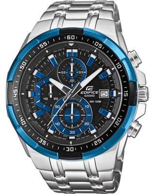 Предлагаем купить наручные часы Casio EFR-539BK-1A в г. Абакан. Это мужские часы из коллекции EDIFICE. Водозащита до 100 метров позволит плавать, нырять и заниматься другими водными видами спорта, не беспокоясь о сохранности механизма. Надежное минеральное стекло защищает часы от царапин и долго сохраняет первоначальный внешний вид. Минеральное стекло более устойчиво к появлению небольших царапин и потертостей, хорошо может выдержать небольшие удары и падения. Даже если поцарапаете стекло, его легко можно отполировать в часовой мастерской и вернуть им прежний вид. Корпус часов изготовлен из стали, механизм — кварц. Кварцевые часы всегда точнее механических. В среднем, погрешность хода составляет 20 секунд в месяц. Кварцевые часы не нужно заводить, только менять батарейку раз в несколько лет.