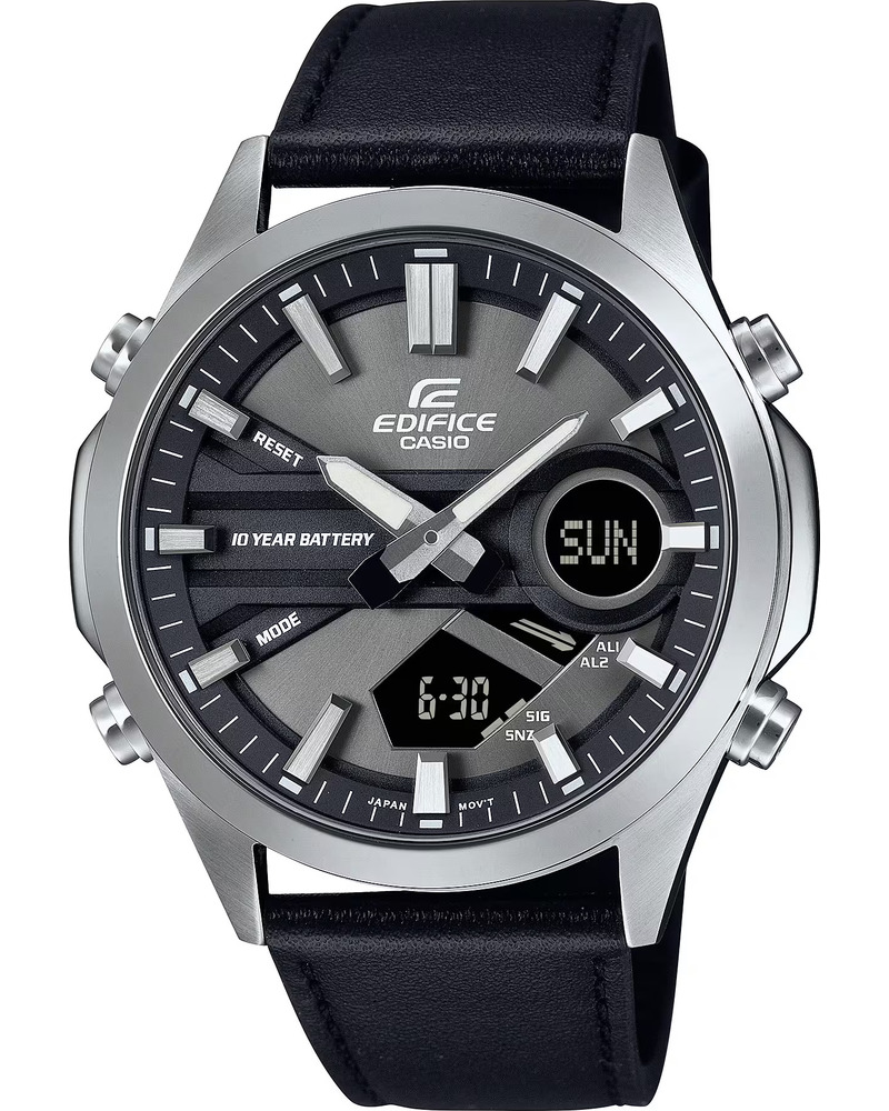 Предлагаем купить наручные часы Casio EFV-C120L-8A в г. Абакан. Это мужские часы из коллекции EDIFICE. Водозащита до 100 метров позволит плавать, нырять и заниматься другими водными видами спорта, не беспокоясь о сохранности механизма. Надежное минеральное стекло защищает часы от царапин и долго сохраняет первоначальный внешний вид. Минеральное стекло более устойчиво к появлению небольших царапин и потертостей, хорошо может выдержать небольшие удары и падения. Даже если поцарапаете стекло, его легко можно отполировать в часовой мастерской и вернуть им прежний вид. Корпус часов изготовлен из стали, механизм — кварц. Кварцевые часы всегда точнее механических. В среднем, погрешность хода составляет 20 секунд в месяц. Кварцевые часы не нужно заводить, только менять батарейку раз в несколько лет.