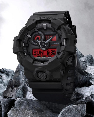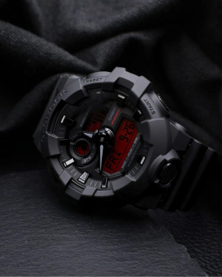 Предлагаем купить наручные часы Casio GA-700BBR-1A в г. Абакан. Это мужские часы из коллекции G-Shock. Водозащита до 200 метров позволит плавать, нырять и погружаться под воду с аквалангом. Надежное минеральное стекло защищает часы от царапин и долго сохраняет первоначальный внешний вид. Минеральное стекло более устойчиво к появлению небольших царапин и потертостей, хорошо может выдержать небольшие удары и падения. Даже если поцарапаете стекло, его легко можно отполировать в часовой мастерской и вернуть им прежний вид. Корпус часов изготовлен из полимера, механизм — кварц. Кварцевые часы всегда точнее механических. В среднем, погрешность хода составляет 20 секунд в месяц. Кварцевые часы не нужно заводить, только менять батарейку раз в несколько лет.