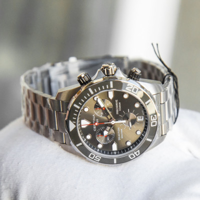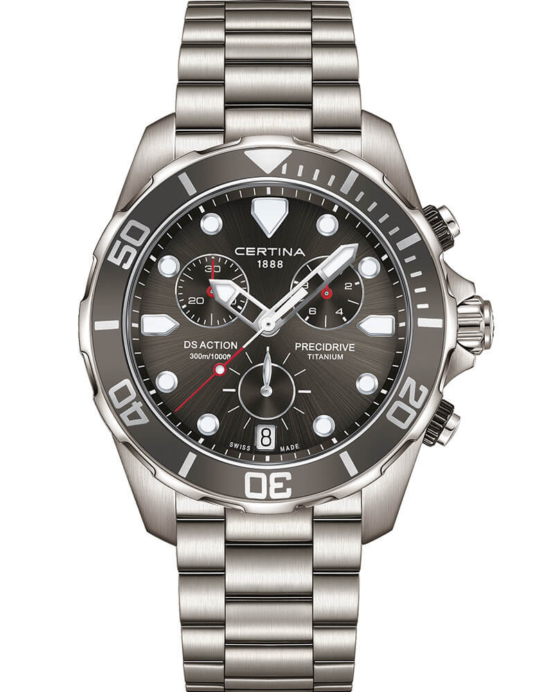 Предлагаем купить наручные часы Certina C032.417.44.081.00 в г. Абакан. Это мужские часы из коллекции DS Action. Водозащита до 300 метров позволит плавать, нырять и погружаться под воду с аквалангом. Надежное сапфировое стекло противостоит появлению царапин. Сапфировое стекло используется в дорогостоящих изделиях, это лучшее стекло для наручных часов, которое не царапается при механическом воздействии, его можно повредить только алмазом. Корпус часов изготовлен из титана, механизм — кварц. Кварцевые часы всегда точнее механических. В среднем, погрешность хода составляет 20 секунд в месяц. Кварцевые часы не нужно заводить, только менять батарейку раз в несколько лет.