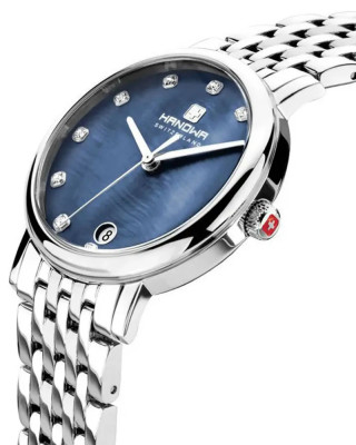 Предлагаем купить наручные часы Hanowa HAWLH0001203 в г. Абакан. Это классические женские часы из коллекции Brevine. Водозащита до 50 метров позволит принимать душ или умываться, не снимая часов. Надежное минеральное стекло защищает часы от царапин и долго сохраняет первоначальный внешний вид. Минеральное стекло более устойчиво к появлению небольших царапин и потертостей, хорошо может выдержать небольшие удары и падения. Даже если поцарапаете стекло, его легко можно отполировать в часовой мастерской и вернуть им прежний вид. Корпус часов изготовлен из стали, механизм — кварц. Кварцевые часы всегда точнее механических. В среднем, погрешность хода составляет 20 секунд в месяц. Кварцевые часы не нужно заводить, только менять батарейку раз в несколько лет.