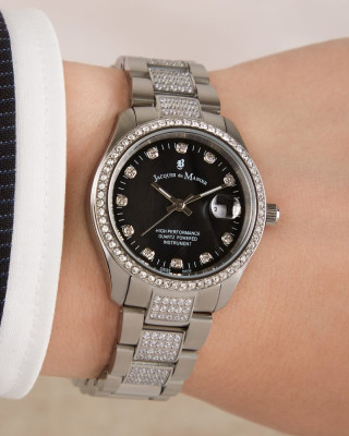 Предлагаем купить наручные часы Jacques du Manoir JWL01505 в г. Абакан. Это классические женские часы из коллекции Inspiration. Водозащита до 50 метров позволит принимать душ или умываться, не снимая часов. Надежное минеральное стекло защищает часы от царапин и долго сохраняет первоначальный внешний вид. Минеральное стекло более устойчиво к появлению небольших царапин и потертостей, хорошо может выдержать небольшие удары и падения. Даже если поцарапаете стекло, его легко можно отполировать в часовой мастерской и вернуть им прежний вид. Корпус часов изготовлен из стали, механизм — кварц. Кварцевые часы всегда точнее механических. В среднем, погрешность хода составляет 20 секунд в месяц. Кварцевые часы не нужно заводить, только менять батарейку раз в несколько лет.