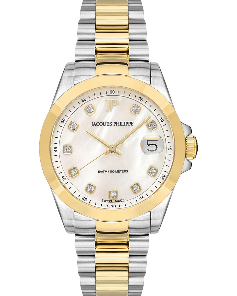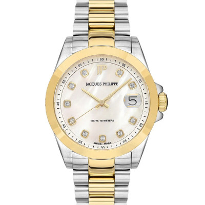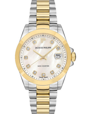 Предлагаем купить наручные часы Jacques Philippe JPQLS347388YG в г. Абакан. Это классические женские часы из коллекции Infinitum. Водозащита до 100 метров позволит плавать, нырять и заниматься другими водными видами спорта, не беспокоясь о сохранности механизма. Надежное сапфировое стекло противостоит появлению царапин. Сапфировое стекло используется в дорогостоящих изделиях, это лучшее стекло для наручных часов, которое не царапается при механическом воздействии, его можно повредить только алмазом. Корпус часов изготовлен из стали, механизм — кварц. Кварцевые часы всегда точнее механических. В среднем, погрешность хода составляет 20 секунд в месяц. Кварцевые часы не нужно заводить, только менять батарейку раз в несколько лет.