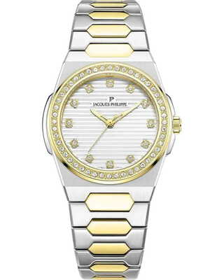 Предлагаем купить наручные часы Jacques Philippe JPQLS727328YG в г. Абакан. Это женские часы из коллекции Bellus. Водозащита до 50 метров позволит принимать душ или умываться, не снимая часов. Надежное сапфировое стекло противостоит появлению царапин. Сапфировое стекло используется в дорогостоящих изделиях, это лучшее стекло для наручных часов, которое не царапается при механическом воздействии, его можно повредить только алмазом. Корпус часов изготовлен из стали, механизм — кварц. Кварцевые часы всегда точнее механических. В среднем, погрешность хода составляет 20 секунд в месяц. Кварцевые часы не нужно заводить, только менять батарейку раз в несколько лет.