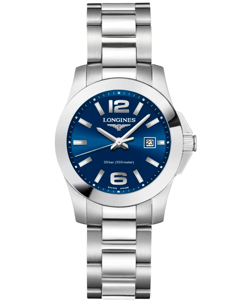 Предлагаем купить наручные часы Longines L3.376.4.96.6 в г. Абакан. Это женские часы из коллекции Conquest. Водозащита до 300 метров позволит плавать, нырять и погружаться под воду с аквалангом. Надежное сапфировое стекло противостоит появлению царапин. Сапфировое стекло используется в дорогостоящих изделиях, это лучшее стекло для наручных часов, которое не царапается при механическом воздействии, его можно повредить только алмазом. Корпус часов изготовлен из стали, механизм — кварц. Кварцевые часы всегда точнее механических. В среднем, погрешность хода составляет 20 секунд в месяц. Кварцевые часы не нужно заводить, только менять батарейку раз в несколько лет.