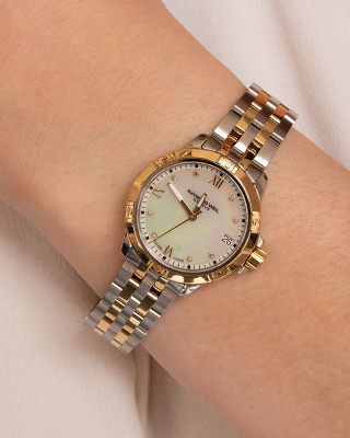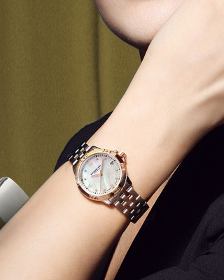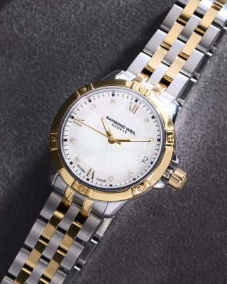 Предлагаем купить наручные часы Raymond Weil 5960-STP-00995 в г. Абакан. Это классические женские часы из коллекции Tango. Водозащита до 100 метров позволит плавать, нырять и заниматься другими водными видами спорта, не беспокоясь о сохранности механизма. Надежное сапфировое стекло противостоит появлению царапин. Сапфировое стекло используется в дорогостоящих изделиях, это лучшее стекло для наручных часов, которое не царапается при механическом воздействии, его можно повредить только алмазом. Корпус часов изготовлен из стали, механизм — кварц. Кварцевые часы всегда точнее механических. В среднем, погрешность хода составляет 20 секунд в месяц. Кварцевые часы не нужно заводить, только менять батарейку раз в несколько лет.