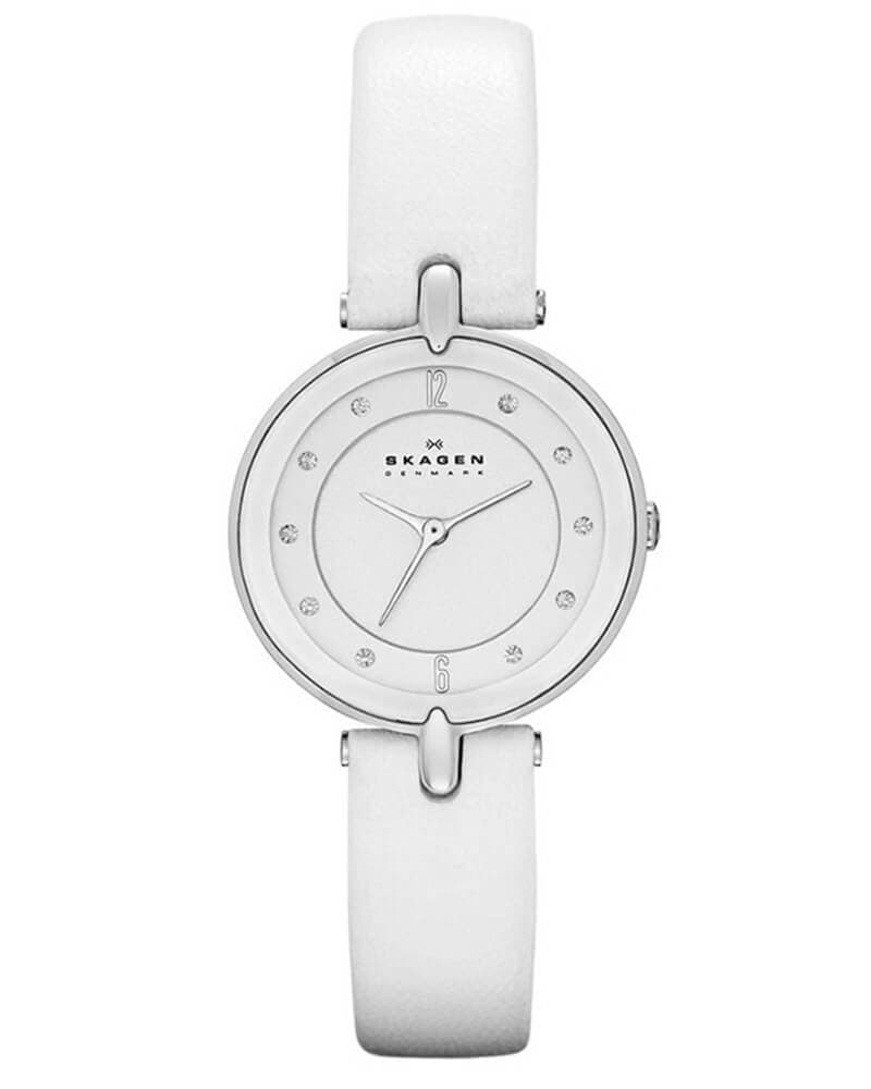 Наручные часы от датской фирмы Skagen – идеальное дополнение к повседневному образу девушки, ценящей классику, комфорт и элегантность. Циферблат на белом ремешке имеет небольшую толщину благодаря особому кварцевому механизму, лежащему в основе данной модели. Он позволяет говорить не только об изяществе, но и о точности на долгие годы. Несмотря на внешнюю хрупкость, изделие остается очень прочным, ведь его защищают от царапин и других повреждений стальной корпус и минеральное стекло.