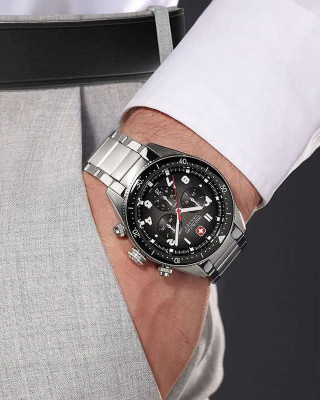 Предлагаем купить наручные часы Swiss Military Hanowa SMWGI0003803 в г. Абакан. Это мужские часы из коллекции Greyhound. Водозащита до 100 метров позволит плавать, нырять и заниматься другими водными видами спорта, не беспокоясь о сохранности механизма. Надежное сапфировое стекло противостоит появлению царапин. Сапфировое стекло используется в дорогостоящих изделиях, это лучшее стекло для наручных часов, которое не царапается при механическом воздействии, его можно повредить только алмазом. Корпус часов изготовлен из стали, механизм — кварц. Кварцевые часы всегда точнее механических. В среднем, погрешность хода составляет 20 секунд в месяц. Кварцевые часы не нужно заводить, только менять батарейку раз в несколько лет.