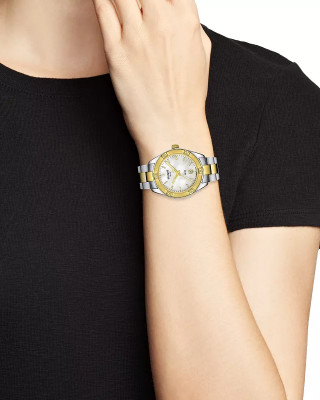 Предлагаем купить наручные часы Tissot T101.910.22.111.00 в г. Абакан. Это женские часы из коллекции T-Classic. Водозащита до 100 метров позволит плавать, нырять и заниматься другими водными видами спорта, не беспокоясь о сохранности механизма. Надежное сапфировое стекло противостоит появлению царапин. Сапфировое стекло используется в дорогостоящих изделиях, это лучшее стекло для наручных часов, которое не царапается при механическом воздействии, его можно повредить только алмазом. Корпус часов изготовлен из стали, механизм — кварц. Кварцевые часы всегда точнее механических. В среднем, погрешность хода составляет 20 секунд в месяц. Кварцевые часы не нужно заводить, только менять батарейку раз в несколько лет.