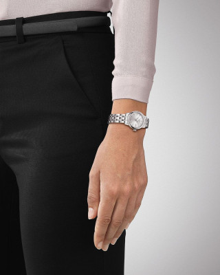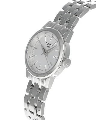 Предлагаем купить наручные часы Tissot T129.210.11.031.00 в г. Абакан. Это классические женские часы из коллекции T-Classic. Водозащита до 50 метров позволит принимать душ или умываться, не снимая часов. Надежное сапфировое стекло противостоит появлению царапин. Сапфировое стекло используется в дорогостоящих изделиях, это лучшее стекло для наручных часов, которое не царапается при механическом воздействии, его можно повредить только алмазом. Корпус часов изготовлен из стали, механизм — кварц. Кварцевые часы всегда точнее механических. В среднем, погрешность хода составляет 20 секунд в месяц. Кварцевые часы не нужно заводить, только менять батарейку раз в несколько лет.